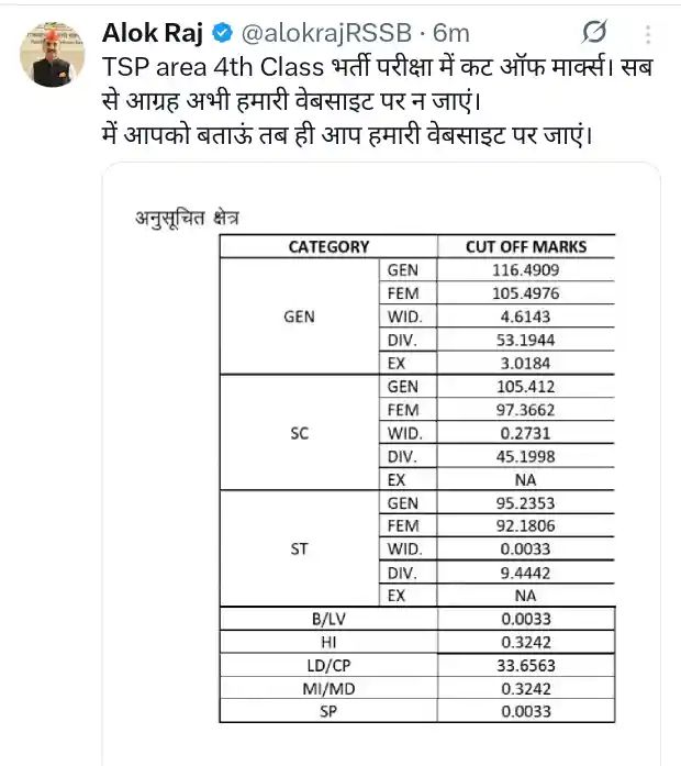 TSP area 4th Class भर्ती परीक्षा में कट ऑफ मार्क्स। सब से आग्रह अभी हमारी वेबसाइट पर न जाएं।